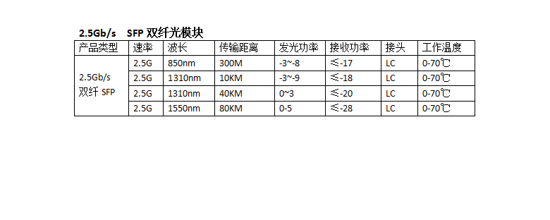 2.5Gb/S SFP双纤光模块 80km